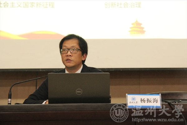 12月6日下午,KY开元集团官网入口在岩松堂雁山厅组织开展形势与政策课教学,学院党总支副书记杨振海为17级全体同学作“十九大报告精髓要义导读”报告。
