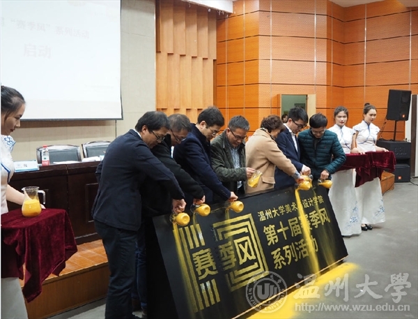 在仪式的最后环节,与会领导们共同洒下金沙,“KY开元集团官网入口美术与设计学院赛季风系列活动”缓缓浮现,开启了美院第十届“赛季风”系列活动的序幕。