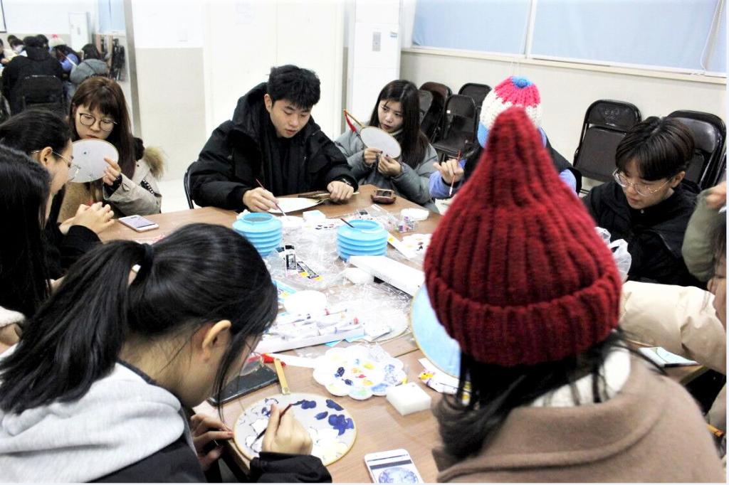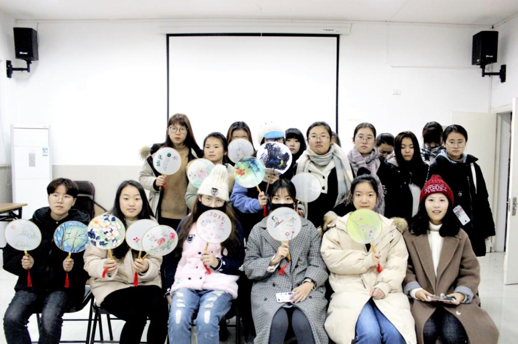 绫绢扇产于浙江省,是中国传统手工艺品之一,属于宫扇的一种,原是贵族妇女的赏玩之物,一般多圆形,故又名“团扇”,绫绢扇扇面轻如蝉翼、薄如晨雾、色泽光亮,给人以温文尔雅之感。“人生若只如初见,何处秋风悲画扇?”到了秋天,我们夏天用的扇子就被抛弃了,诗中的“画扇”指的就是绫绢扇。绫绢扇的扇面装饰包括绘画、刺绣、缂丝、抽纱、烫花、通草贴花等方式。同学们选择了刺绣和绘画两种方式分组制作,刺绣组的志愿者们一手拿针,一手捏线,将线穿过针孔,又细致地将针线穿过扇子,又调转针头,反方向再穿过一次,将线慢慢拉出,这一套动作如行云流水般流畅到位。绘画组的志愿者们也丝毫没有懈怠,一笔一画,勾勒出了一幅幅令人沉醉的画面。优秀而又独特的传统文化需要用心去感受和发扬,同学们在制作的过程中是对历史的传承,也是同传统文化的“对话”。