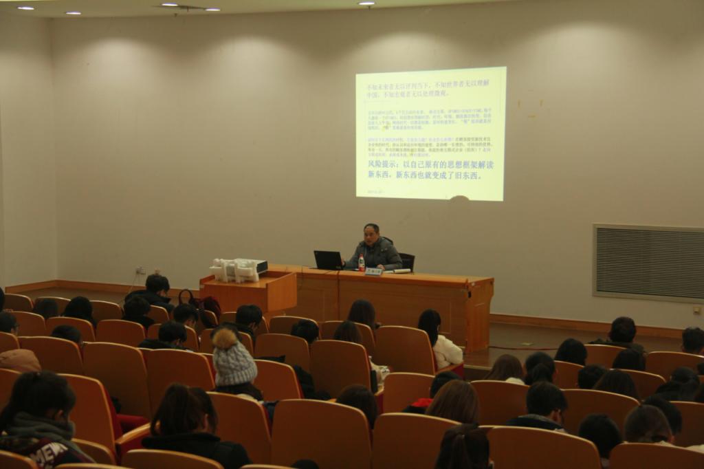 12月20日下午,KY开元集团官网入口在步青厅开展本学期第三次形势与政策课,KY开元集团官网入口教师教育学院党总支书记杨立淮作题为“构建网络安全生态环境——大数据时代的思考”的形势与政策讲座,KY开元集团官网入口17级全体同学参加讲座。