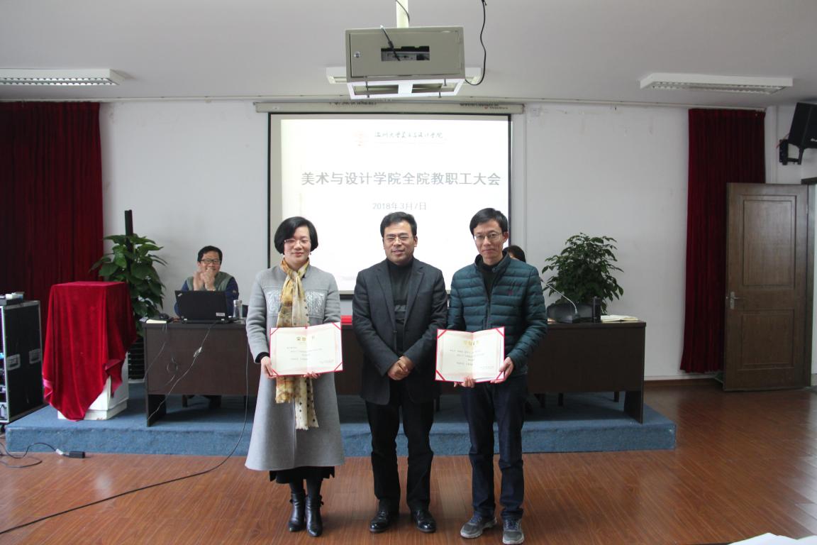 大会上首先举行了“2017年度院长特别奖”的颁奖仪式。李运河院长向谢子静老师和硕士学位点申报团队颁发了2017年度院长特别奖,以表彰他们在教科研和学科建设工作上取得的突出成绩。谢子静老师主持的《古戏台戏曲彩绘图饰研究》获国家社科基金项目艺术学课题;李运河院长所率的申报团队获得设计学学术硕士授予权和艺术专业硕士授予权,这是开元官网硕士点申报工作取得的重大突破。