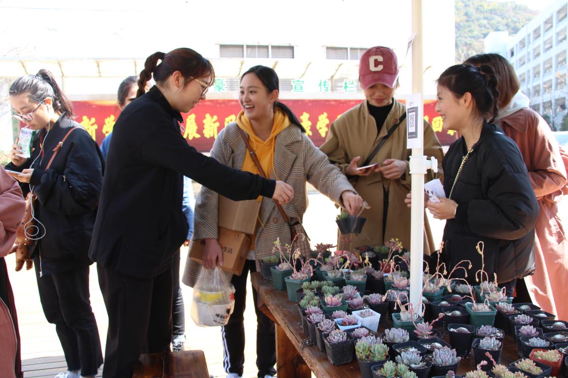 呆萌的多肉植物美化生活、学习环境,带给同学们美丽的心情。本次活动在公益售卖多肉植物的同时,也希望买走它的同学们通过养一盆盆小小的多肉植物,感受自然的颜色。