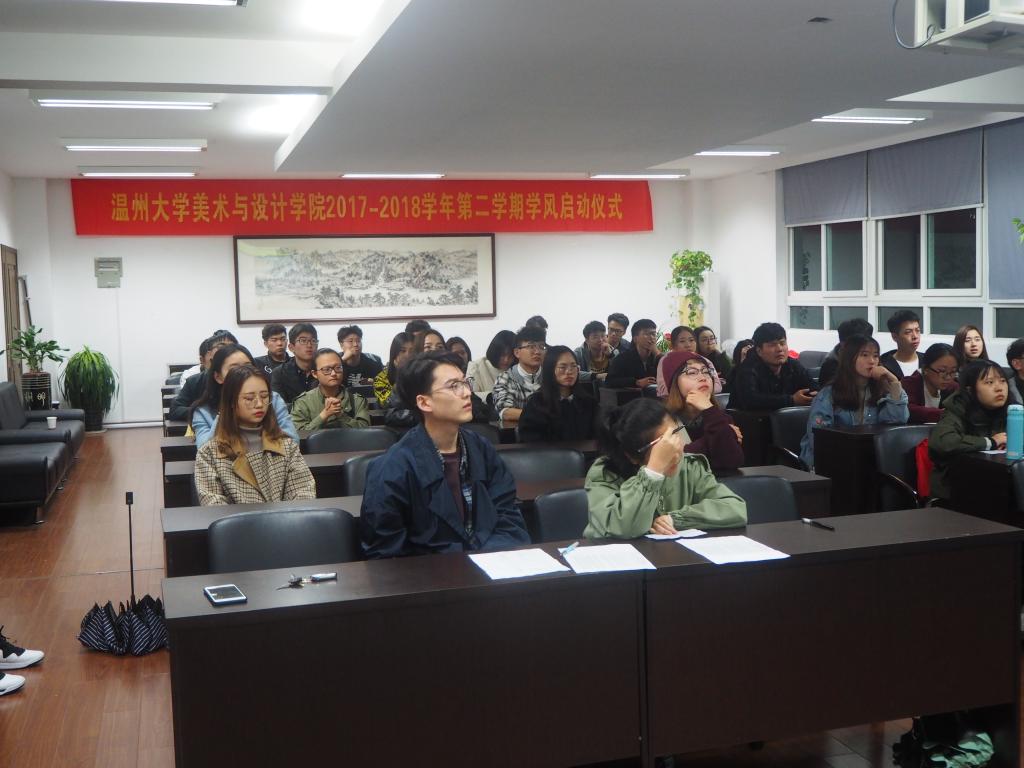 3月16日晚上,KY开元集团官网入口2017-2018学年第二学期学风动员大会在2B4001召开。参加本次会议的有学生科李雪涛老师,15-17级各班班长和纪检委员。 会议之初由学风纪检部部长金洁公布了上学期的查课情况,同时强调了本学期查课的注意事项。随后李雪涛老师就查课情况再次做出强调:上学期美院各班级的出勤率都很高,但仍有极个别的班级出现迟到旷课的情况,本学期会严抓迟到、旷课和上课玩手机等问题。紧接着,李雪涛老师就特色晚自习提出了要求,晚自习从第三周开始,17级要达到规定的次数,并鼓励16、15届学生积极参加晚自习。最后,李雪涛老师重点传达了2017-2018学年五班十星评选的内容,希望更多的班级和个人参加五班十星的评选。 文/吴月 图/朱君卫