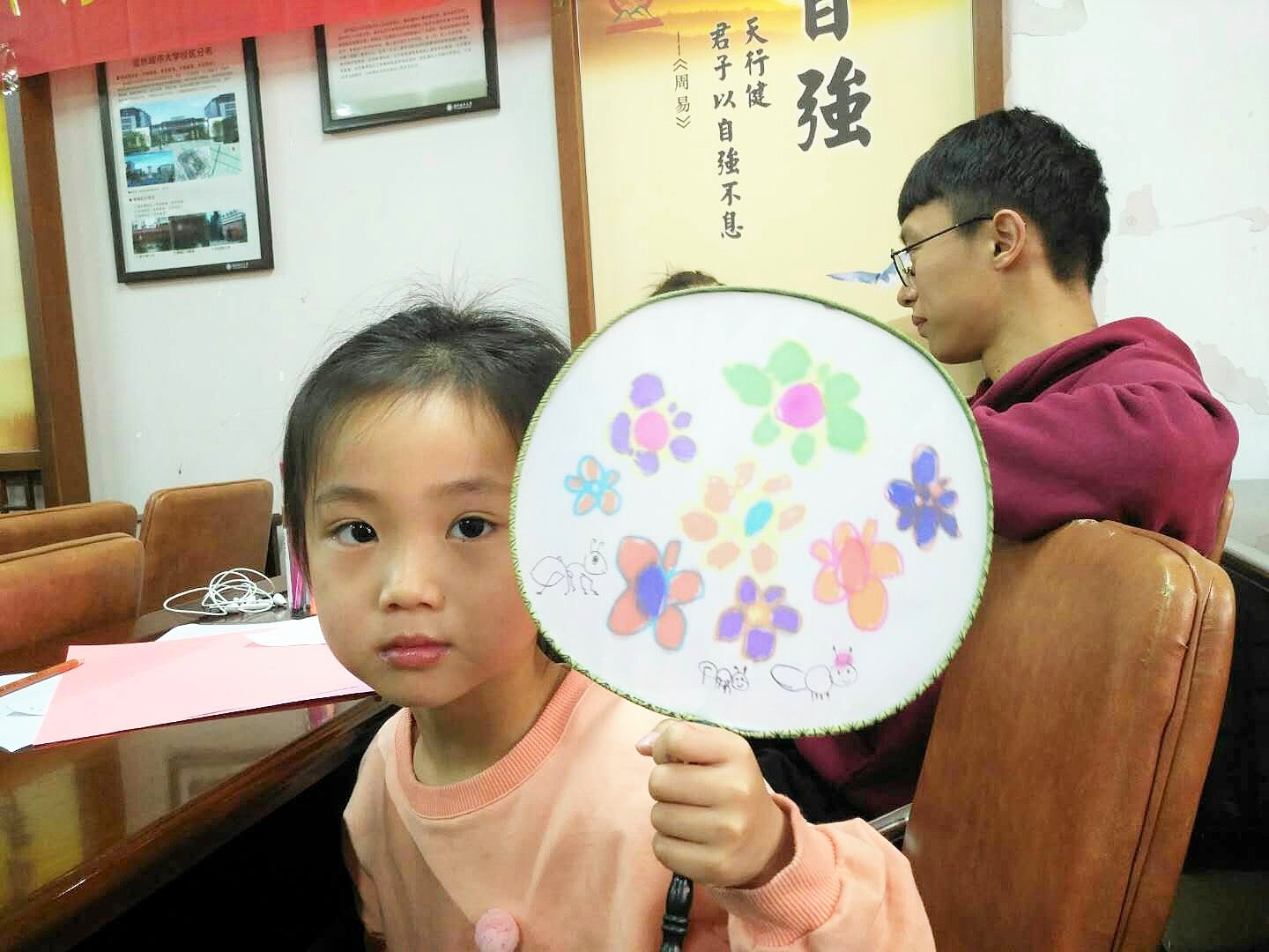 扇文化有着深厚的文化底蕴,在舞蹈作品中扇子也有不同的象征意义。扇画在明朝是文人个性癖好的体现,于尺幅之间寄托无限情谊,遂成为文人雅士的必备之物,久而成为一种风俗,延续至今。今天的梅泉支教主要让小朋友们以自己的心意绘画扇子,让他们接触到这一类的文化,了解扇子的奥秘,也让中国优秀传统文化得以传承。