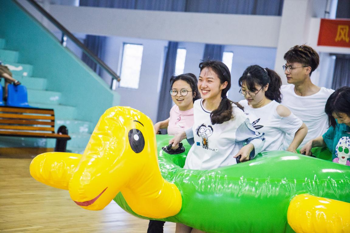 在活动开始前,团学指导老师李雪涛为大家致了简短的开幕词,主要是让同学们了解举办这次活动的目的与意义。随后比赛正式开始。此次趣味运动会的比赛项目有“平板支撑”“龟兔赛跑”“履带战车”“鼓舞人心”五个团体项目,以及“足球小将”“套圈达人”“百发百中”“踢毽子”“吹乒乓球”五个单人项目。比赛还未开始,选手们就个个摩拳擦掌,跃跃欲试。项目分批进行,在比赛过程中,各队队员都表现得相当活跃,他们相互合作,互帮互助。各队都严格遵守比赛规则,气氛热烈。每个项目都在工作人员的指引下顺利进行。虽然天气比较热,阳光照得人直流汗,但是不论是工作人员还是队各员都积极的参与了比赛,整个场地都充满了欢声笑语。