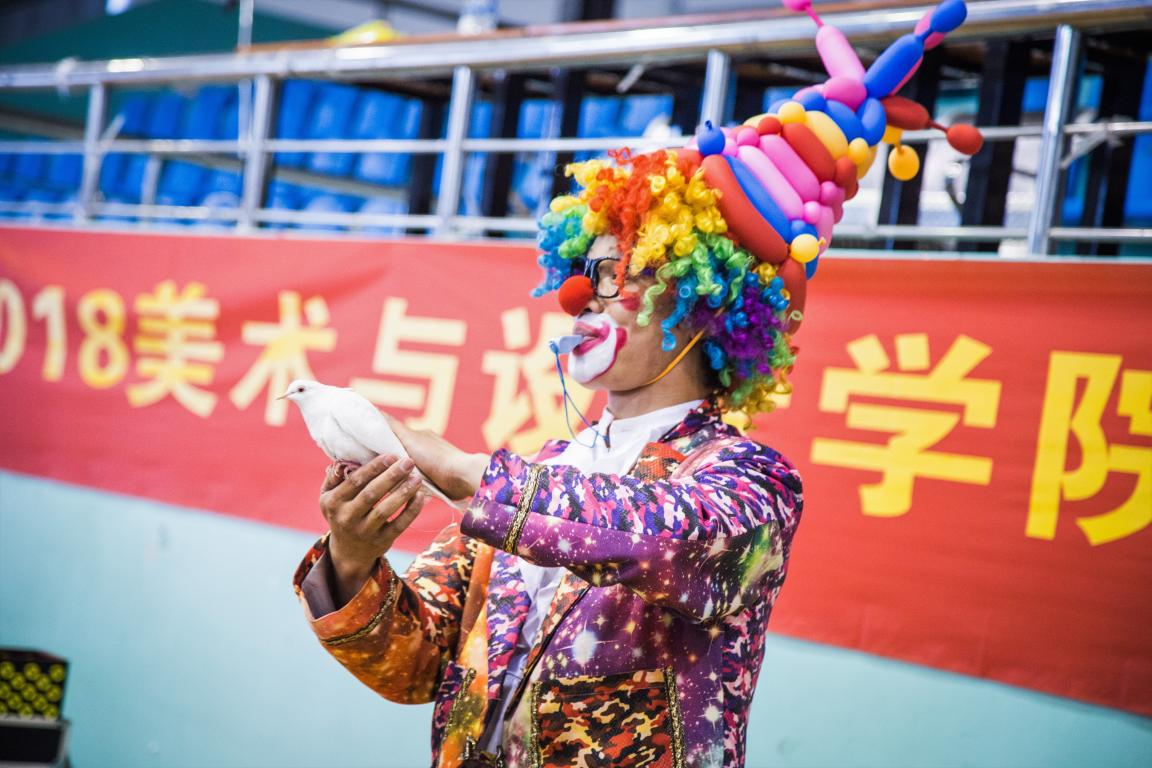 5月13日下午,美院2018春季趣味运动会在南校体育馆举行,由各班组成的13支队伍参加了比赛。