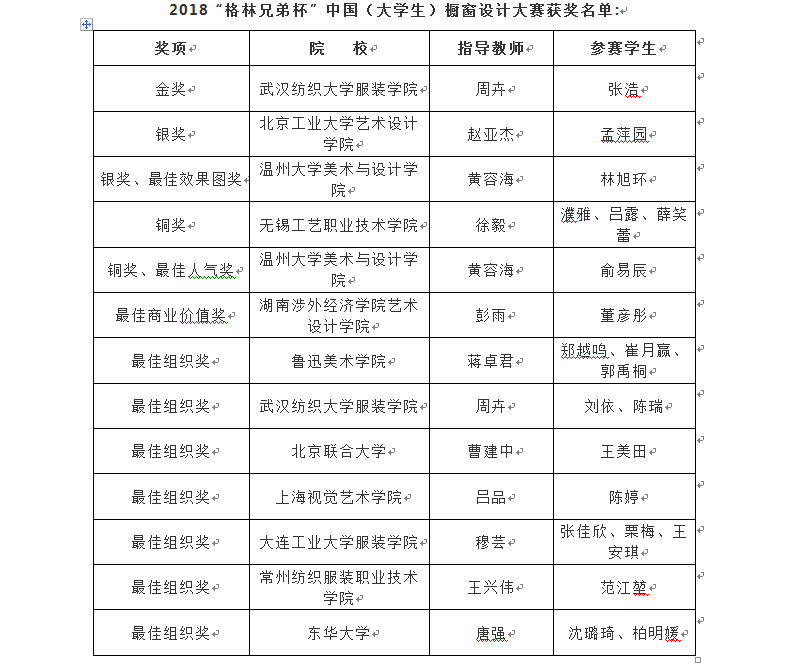 2018“格林兄弟杯”中国(大学生)橱窗设计大赛于5月18日在北京落下帷幕,在当晚举行的尚坤塬·2018中国国际大学生时装周颁奖典礼上,开元官网黄容海老师指导的14服装展示班两位学生的参赛作品狂揽4项大奖。林旭环同学的作品《昨日世界》荣获银奖和最佳效果图奖;俞易辰同学的作品《迷恋》荣获铜奖和最佳人气奖。