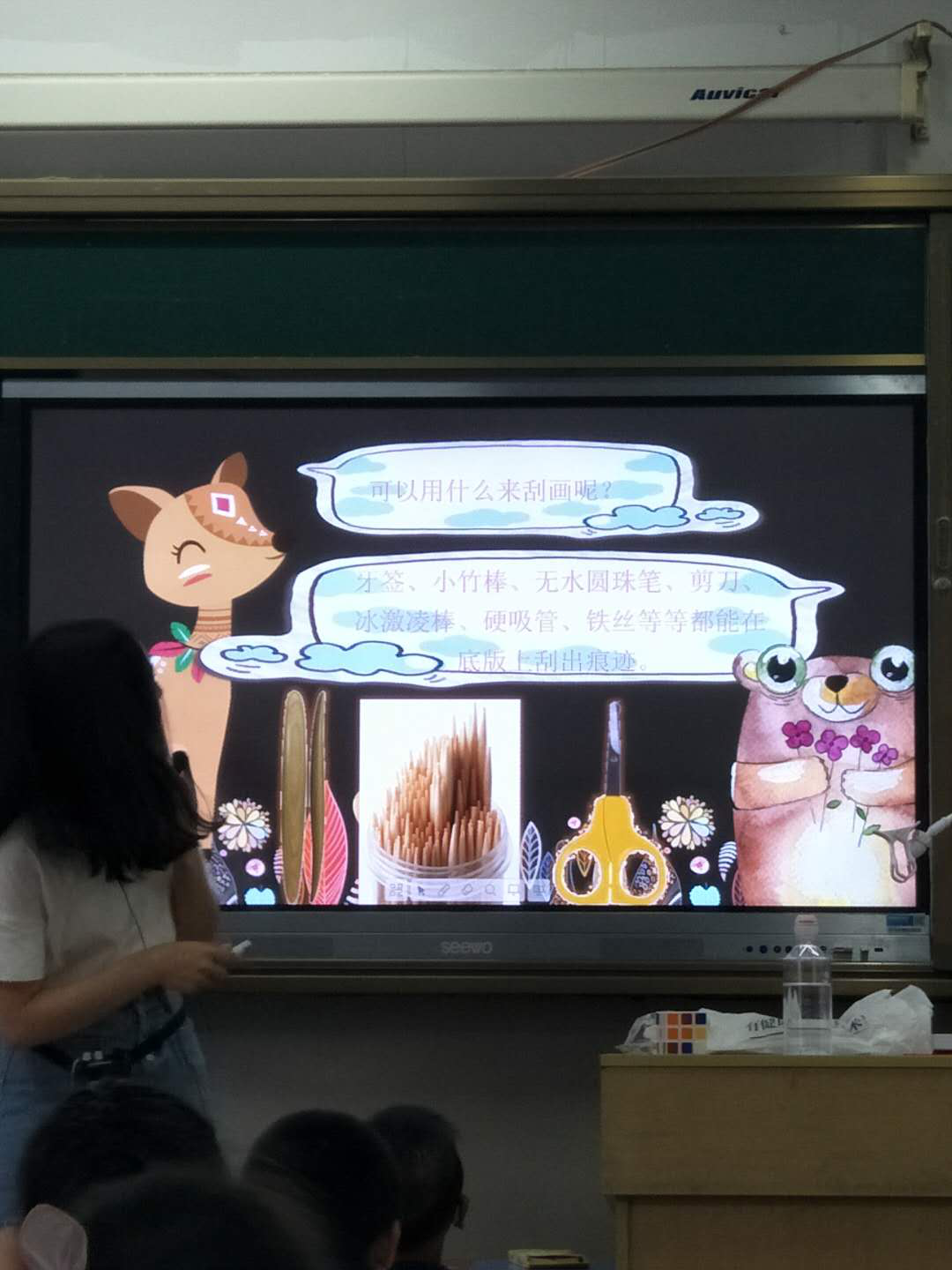 例如,在活字印刷术的课堂上,老师以书籍作为课堂导入。创意十足的镜像教具,有趣的师生互动,简洁明了的制作过程,详细地制作过程演示以及精彩地学生作品展示无不让我们为之称赞。