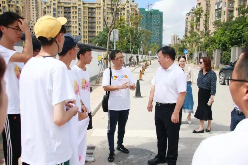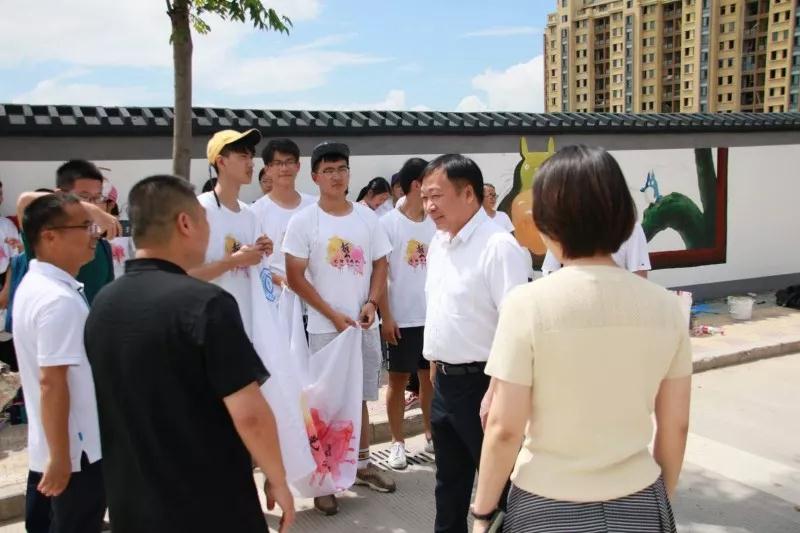 2018年7月19日上午,KY开元集团官网入口党委副书记赵敏、团委书记屠霁霞、团委副书记丁强以及溯初学区党委书记陈宏毅等老师在乐清市文联副主席洪蛮、团市委学少部副部长郑亦蒂、城东街道宣传部主任陈力等人的陪同下,前往乐清市中心幼儿园晨曦园区,慰问KY开元集团官网入口“艺绘”大学生暑期社会实践队。 暑期社会实践活动,是大学生深入社会基层,将理论付诸实践的一次重大活动。本着“受教育、长才干、做贡献”的宗旨,美院“艺绘”实践队通过墙绘美化社会环境,为乐清市城东街道打造美丽街道助力。 下午,实践队全体队员于准时集合,继续绘画工作。在领导慰问过后,大家的活动积极性明显高涨。通过实践队员的一致努力,墙绘的效果基本成型,引来不少市民驻足观看。我们的暑期社会实践仍在如火如荼地进行着,愿实践结束时,大家都能在辛劳中收获喜悦的果实。在接下来的半个多月时间里,这些同学们还将深入城东街道云岭村等农村,结合新农村建设,开展以精神文明为主题的彩绘创作,助力文明城市建设。