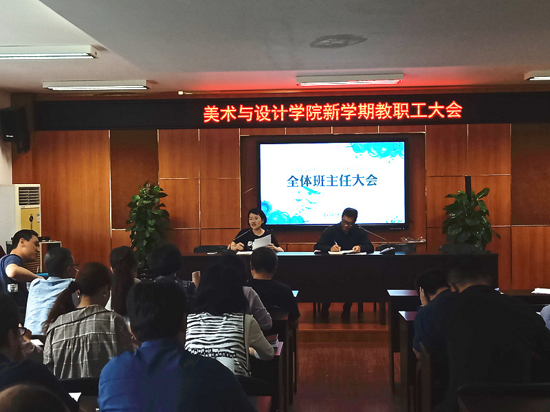 9月12日下午,美院2018-2019学年第一学期班主任工作会议在2B4001召开。学院党总支副书记杨振海、学生科叶筱卉老师和学院全体班主任老师参加了会议。