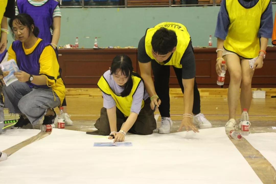 同学们充满热情,现场氛围极佳,完成“压气球”游戏,同学们争先恐后地冲出体育馆,开始进行定向活动。各支队伍都十分卖力,分别来到美院门口、天鹅湖广场、步青广场进行“能量悦动”、“一圈到底”、“团队悦动”游戏,一路上虽然有些辛苦,但同学们依然互帮互助,努力克服,卖力的奔跑。在人生的征程中,也希望他们有无所畏惧、努力拼搏的勇气。