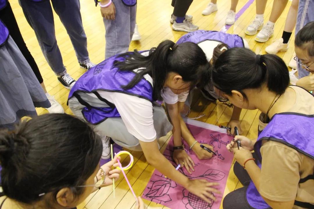 开始挑战前,各班先进行团队建设,以班级为单位,一起天马行空起队名、想口号、绘队旗…短短十分钟,每支队伍全部建设完成,各队队长带领队员依次进行展示,气势磅礴,掌声四起。