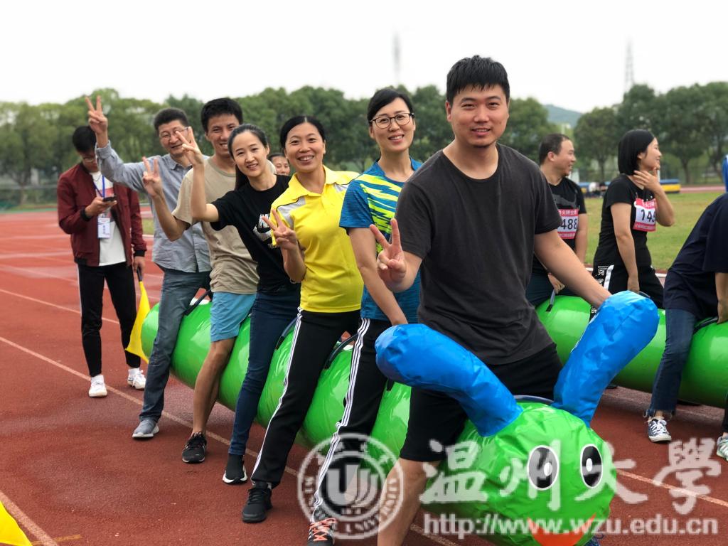 早在本届教工运动会前,学院班子和院工会成员认真组织联络各位参赛老师,大家提前到场积极备战,针对不同的项目进行了有针对性的训练。个人项目方面,邱彩萍老师在女子丙组持物跑项目上取得了全校季军的好成绩。集体项目更考验全体参赛老师们之间的默契和协调性。在集体跳绳项目上,经过全体参赛老师的努力,开元官网最终取得了全校第6名的可喜成绩;极富趣味性的“毛毛虫竞速”比赛中开元官网教工队取得了小组第一;而在10x80米接力跑项目中,杨振海副书记更是发挥领导带头作用亲自披挂上阵,赢得了观众席上开元官网学生助威团的一片加油喝彩声。由于开元官网教职员工在比赛中表现出来的良好精神面貌,被组委会授予“体育道德风尚奖”!