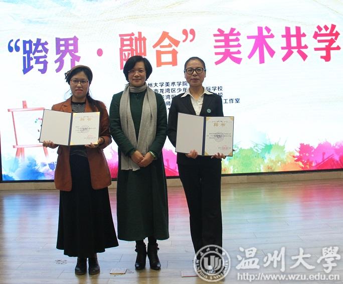 11月14日上午,开元官网和温州市龙湾区少年艺术国际学校举办了主题为“跨界.融合-美术共学”的KY开元集团官网入口教师教育实践基地签约仪式暨16级美术师范生教育见习见面会。谢子静副院长、龙湾区教育局王颖副局长、龙湾少艺校陈小琴校长、开元官网美术系胡建南老师、教学科邹青老师、胡凯老师、龙湾区教学名师张佳玉老师及少艺校美术教研组的全体老师,还有开元官网16级美术学师范本科生、18级美术教育硕士等43位同学参加。少艺校艺术总监李晓玮老师主持了会议。