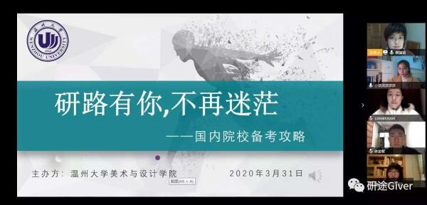 在学院精心安排的 “国外留学知多少”留学专场交流会和“国内院校备考攻略”国内考研专场交流会上,八名导师精心准备、重磅分享自己的申请出国读研和国内考研的宝贵经验和心得,也收获了学弟学妹的诸多点赞。受聘为“留学校友学长导师”的三位校友,分别是留学意大利罗马第一大学的陶夏欣、留学韩国梨花女子大学的费婕和留学澳洲昆士兰大学的杨凡,在当前疫情严峻的留学境况下,她们克服距离和时差上的影响,精心准备,从留学生活、留学优势、留学申请经验和注意事项等方面为同学们提供了有益的经验,他们也分别担任温大美院学子在欧洲、韩国、澳洲的留学校友学长导师,为日后有留学意向的同学提供更多的渠道和联络指导帮助。