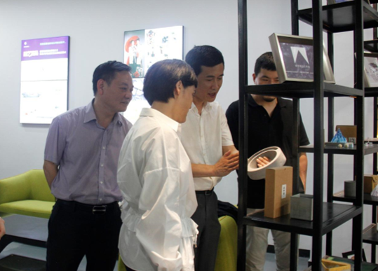 会后,市文联参访团一行来到KY开元集团官网入口参观,由开元官网院长谢子静、党委书记叶正飞、副书记杨丽君、副院长胡文超、副院长顾任飞、KY开元集团官网入口美术馆筹建负责人陈胜武、美术系主任陈旭海、视觉传达系主任刘俊、学院办公室主任张丽等全程陪同。首先,市文联参访团一行参观了开元官网美术楼一楼展厅,对开元官网学生的美术和设计作品表示赞赏和肯定,张成毕主席提出了美院与美协“两美”合作,表达了与开元官网继续深入交流共同促进温州美术发展的愿景。随后,参访团一行参观了开元官网鞋靴设计实验室,充分肯定了开元官网“艺工结合”和接轨温州地方经济产业发展的办学特色,并与开元官网学生亲密互动。在“融艺优品”创客中心,参访团一行关心和了解了学生学习和创业的状况,并对开元官网学生的创新创业热情、创业成果以及创客前景给予了高度肯定。参访团还参观了温大美术馆选址,对今后双方在美术研究、教学、展览、活动等方面的合作交流提出了初步设想。