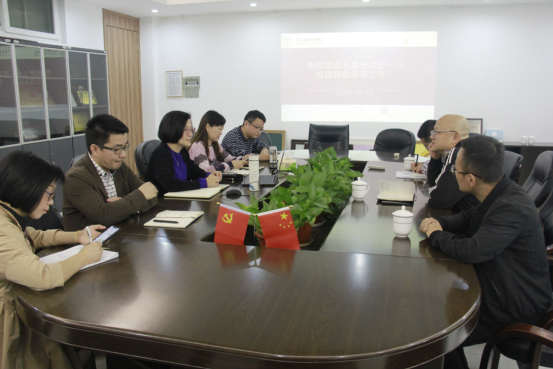 2020年10月29日,永嘉统战部副部长郑焕益、党派科科长金文通、乡贤工作负责人陈炳一行来开元官网交流工作,院长谢子静、副书记杨丽君、副院长胡文超、顾任飞、院办主任张丽出席会议。
