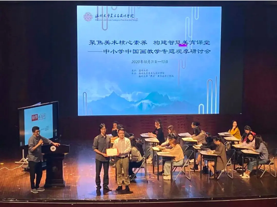 “画阑开处冠中秋”,桂子飘香美院传。2020年10月11日,聚焦美术核心素养,构建智慧美育课堂---中小学中国画教学专题观摩研讨会在在KY开元集团官网入口南校音乐厅举行,研讨会安排了课堂教学展示,主题讲座,名师经验交流等环节,内容丰富、形式多样、深入探讨了美术教育当前所需要关注的美术核心素养以及对于中国画在课堂上的渗透和教法等教学问题。