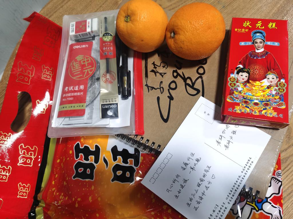 活动开始,学院领导亲切慰问考研学子,希望他们坚定信念,努力奋斗,坚持到底。同时提醒考生在冲刺阶段调整好心态,劳逸结合。随后各位老师向考研学子派发精心准备好的“考研加油包”。“考研加油包”包含文具套装、素描本、状元糕、脐橙、明信片、旺旺雪饼等极具寓意的礼物。