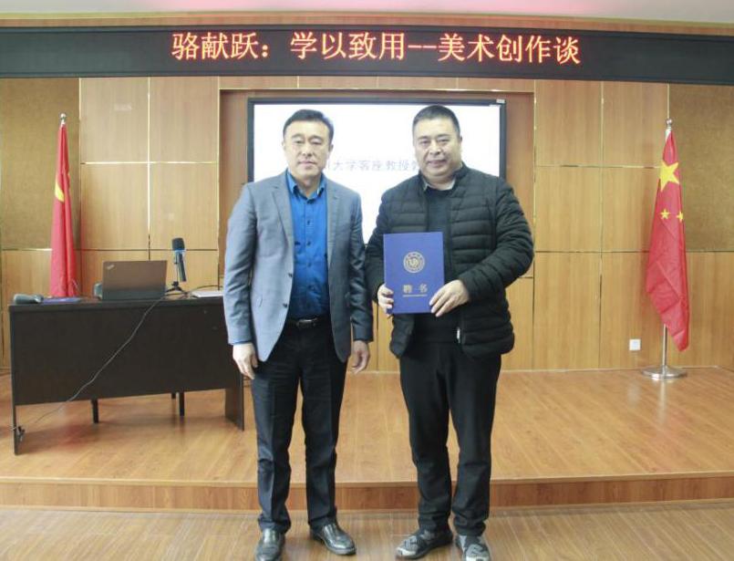 2020年12月16日,KY开元集团官网入口2020年学术月系列活动第二场学术讲座,骆献跃教授的《学以致用——美术创作谈》在2B4001开讲。KY开元集团官网入口副校长薛伟,KY开元集团官网入口院长谢子静,KY开元集团官网入口美术学专业全体师生参加讲座。薛伟副校长为骆献跃教授颁发KY开元集团官网入口客座教授聘书。