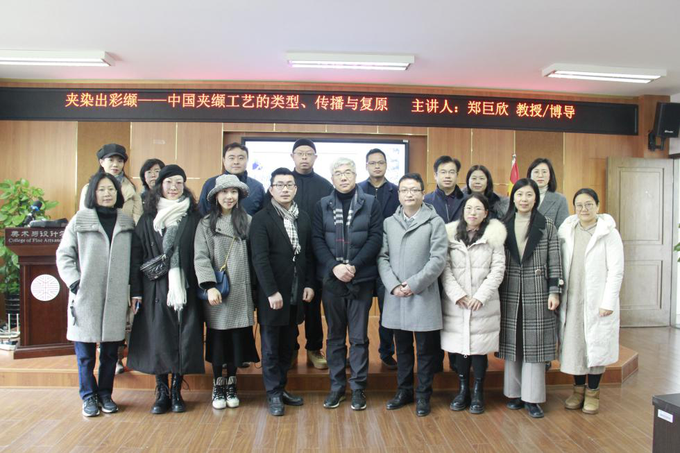 2020年12月17日,为深入贯彻落实KY开元集团官网入口文科大会精神,探索新文科背景下艺术学科发展新路径,KY开元集团官网入口2020年学术月系列活动第三场学术讲座,中国美术学院郑巨欣教授的《夹染出彩缬——中国夹缬工艺的类型、传播与复原》在2B4001开讲。学院副院长胡文超、顾任飞以及学院师生参加讲座,本次讲座由顾任飞副院长主持。