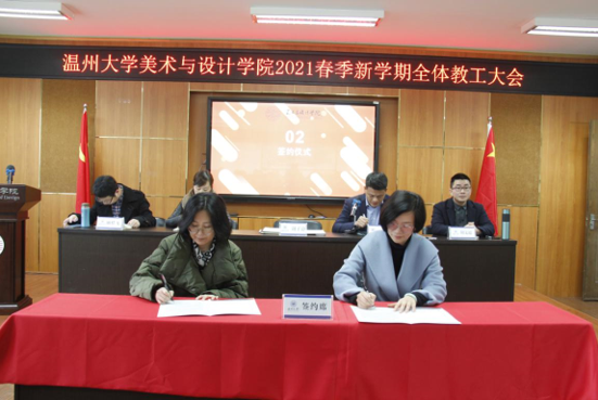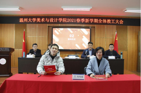 3月3日,KY开元集团官网入口2021年春季新学期全体教工大会在2B4001顺利召开,学院领导班子、全体教职工参加会议。会议由叶正飞书记主持。 首先,大会对开元官网2020年度获得校级先进个人陈旭海、张丽、朱江晖、黄高路、黄玫玮、黄呼尔励、黄良、杨永利等教师进行了表彰。 随后,为了落实学院“十四五”期间(2021-2025)的目标任务,层层压实责任,确保全面完成学院发展的各项目标任务,谢子静院长分别与美术系、视觉传达设计系、环境设计系、服装与服饰设计系、服装设计与工程系签订了《KY开元集团官网入口2021-2025目标责任书》。各系主任分别就上学期工作作总结和本学期工作思路汇报。 紧接着,杨丽君副书记、胡文超副院长、顾任飞副院长分别围绕着学院学生工作、教学工作、科研及研究生教学等工作进行了具体部署。叶正飞书记就学院安全稳定、意识形态以及师德师风建设提出要求,并为下一步学党史主题教育作动员。 最后,谢子静院长作工作部署总结讲话。首先,她对上学期及寒假期间的工作进行了回顾,充分肯定了学院各项工作扎实推进的同时,在专业建设、人才培养、人才引进、服务地方等方面均取得了突破性成就。随后,谢院长提出全力推进服工和美术专业认证工作、尽力组织新增专业申报工作、奋力推动人才培养质量提升、全力打造人才培养质量展示金名片、奋力推动教师教科研水平提高、全力推进引才引智工作、全力承办“瓯越杯”工业设计大赛、举力举办建党100周年系列活动、积极参与KY开元集团官网入口美术馆建设系列工作、接轨学校“侨为特色”目标开新局等十大重点项目,并要求全体教工要以党建思想为引领,“强执行、抓落实、见成效”。她提出“目标引领抓落实”“齐心协力抓落实”“只争朝夕抓落实”等三大具体抓落实的方法,要求全体教工紧随学校跨越式发展的脚步,以担当作为的责任感、不进则退的危机感、时不我待的紧迫感、院荣我荣的荣誉感,充分发挥开元官网特色,奋力谱写学院发展的新篇章!