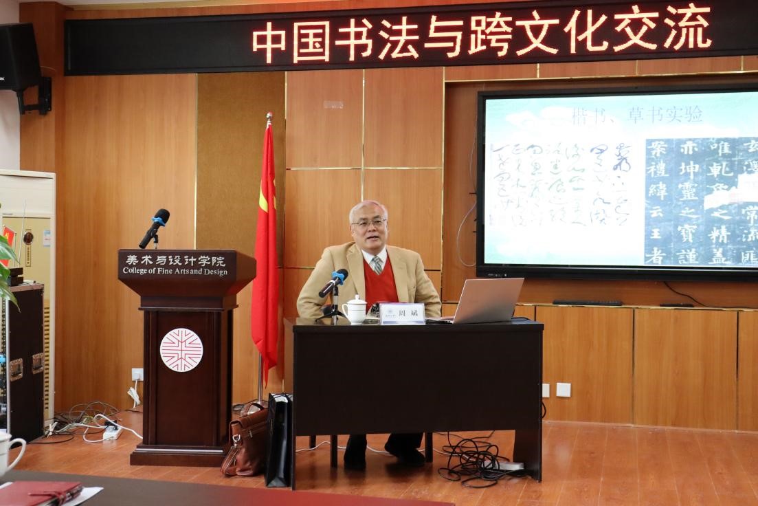 在报告中,周斌教授将跨文化书法理念充分分析,对其美学形态和风格进行逐一评述,并从思想内容及艺术形式两方面对中国书法跨文化的个性化的发展变化进行了深入探析。他认为教学相长尤为重要,在美国时期的教学生活让他本人对于书法文化的研究积累了丰富的经验。