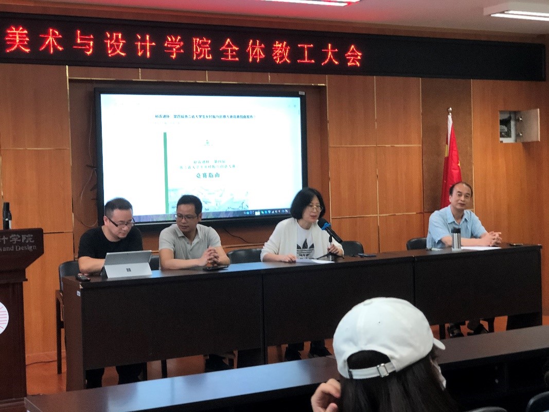 KY开元集团官网入口环境设计系黄玫玮老师、李勋祥老师、郑敬玉老师、叶和生老师与环境设计系学生出席仪式,首先由环境设计系主任黄玫玮老师进行大赛总体简介及KY开元集团官网入口前3届参加该项比赛的情况、获奖作品介绍等。第二环节由郑敬玉老师为学生讲述大赛细节:大赛模式和发展概况、大赛后续与推进和参赛规则与时间等,为学生更好地了解本次大赛准则做了详细介绍。第三环节由前期调研同学刘芳旭、刘青林为全体同学解析专项赛基地的相关情况,展示现场照片、当地文化与发展意向等。