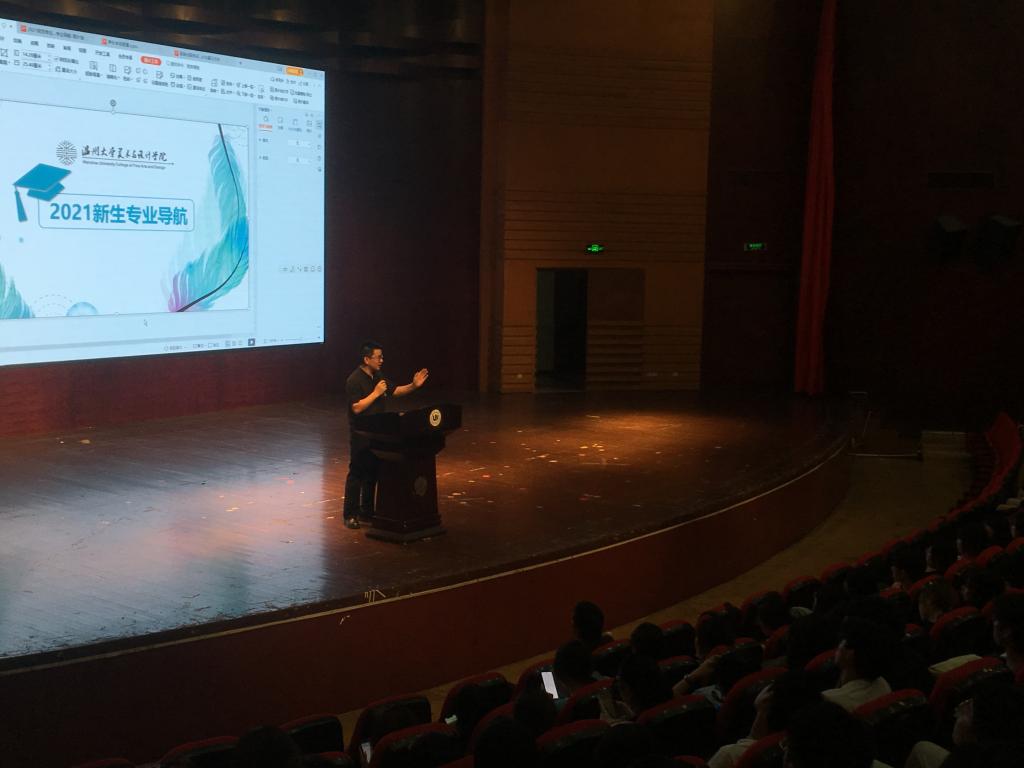 为使新生尽快熟悉专业情况,引导学生潜心向学、志存高远,树立专业意识、科学谋划学业。根据学院始业教育统一安排,开元官网各专业于9月8日上午,在南校区音乐厅及学院专业教室举行始业教育之新生专业导航活动。 会上,胡文超副院长首先介绍了开元官网各专业的基本情况,接着对同学们大学四年的学业规划进行指导,特别指出考研、学科竞赛、参展的重要性,现场学生响应热烈。随后开元官网各专业主任或专业负责人依次进行专业介绍。 图:胡文超副院长正在进行精彩的学业规划指导 图:同学们认真听讲 美术学(师范)系主任陈旭海老师详细讲解了美术学(师范)悠久的历史与雄厚的师资力量,介绍了历届学长学姐优秀的作品,并对新生四年大学生活进行了分析与展望,并就专业下国画、油画、版画、书法四个方向进行了特点介绍。 图:美术系主任陈旭海正进行专业介绍 视觉传达设计系主任刘俊老师详细介绍了视觉传达设计专业,着重介绍了专业发展前景以及同学们在本专业将学习到的专业技能。 图:视觉传达设计系主任刘俊正进行专业介绍 环境设计系主任黄玫玮老师详细介绍了环境设计专业,让学生们更为深入的了解专业前景与就业方向,扫清学生对于环境设计专业盲区。 图:环境设计系主任黄玫玮正进行专业介绍 服装与服饰设计系主任金晨怡老师与教研室主任祝忠良老师分别对服装设计、服装展示设计、鞋履与饰品设计3个专业方向进行了详细的专业分享与就业前景的介绍,并详细讲解了历届优秀的学长学姐的毕业作品。 图:服装与服饰设计系主任金晨怡正进行专业介绍 图:鞋履与饰品设计教研室主任祝忠良正进行专业介绍 服装设计与工程专业负责人朱江晖老师进行专业问题的具体讲解,而后就现场学生积极提出的专业问题,进行了解答与分享。 图:服装设计与工程专业负责人朱江晖正进行专业介绍 新征程,新希望。通过本次专业导航活动,给同学们指明了专业努力的方向,明确了专业学习的目标,使同学们信心倍增投入到学习中去。同时也增进了同学们的学院归属感,增强了“美院人”的使命感。
