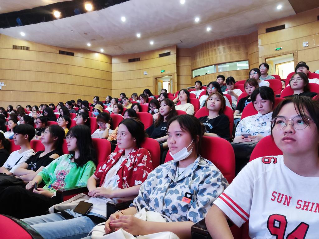 服装设计与工程专业负责人朱江晖老师进行专业问题的具体讲解,而后就现场学生积极提出的专业问题,进行了解答与分享。