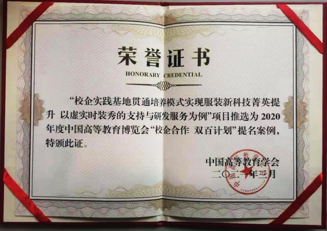 尤其近5年来,专业与数字智能型企业建成“校企贯通培养新科技菁英”的实践基地,将三全育人理念指导实践基地建设,聚焦行业的新科技和学生工程能力的全面发展,校企深度融合、交互赋能有了实体化平台、常态化活动和规范化管理;校企产学融合、共建基地、共同实施新科技菁英培养”,成果特色鲜明,在育人的宏观、中观和微观方面的成效显著。获得中国高等教育学会“校企合作 双百计划”典型案例提名,获校企合作优秀案例奖、中纺工业联合会教学成果二等奖等。