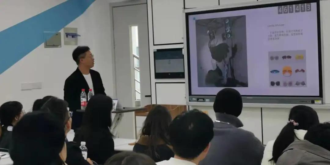 程巍老师就“当今的科技手段使观者在动态的眼球映射下观看并产生更多的灵感和兴趣,从而引起购买欲望”这一设计出发点,结合“Gentle Monster”眼镜品牌的展示空间等案例为在场学生进行了深入浅出的分析,并畅想对于未来产品展示的发展趋势。