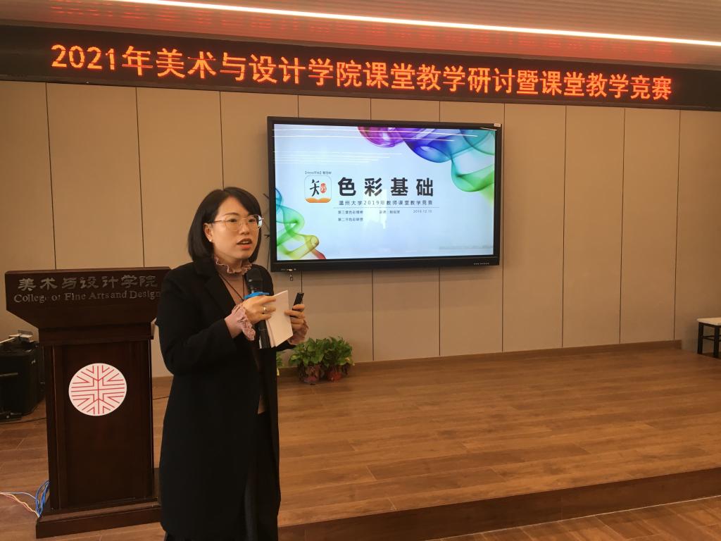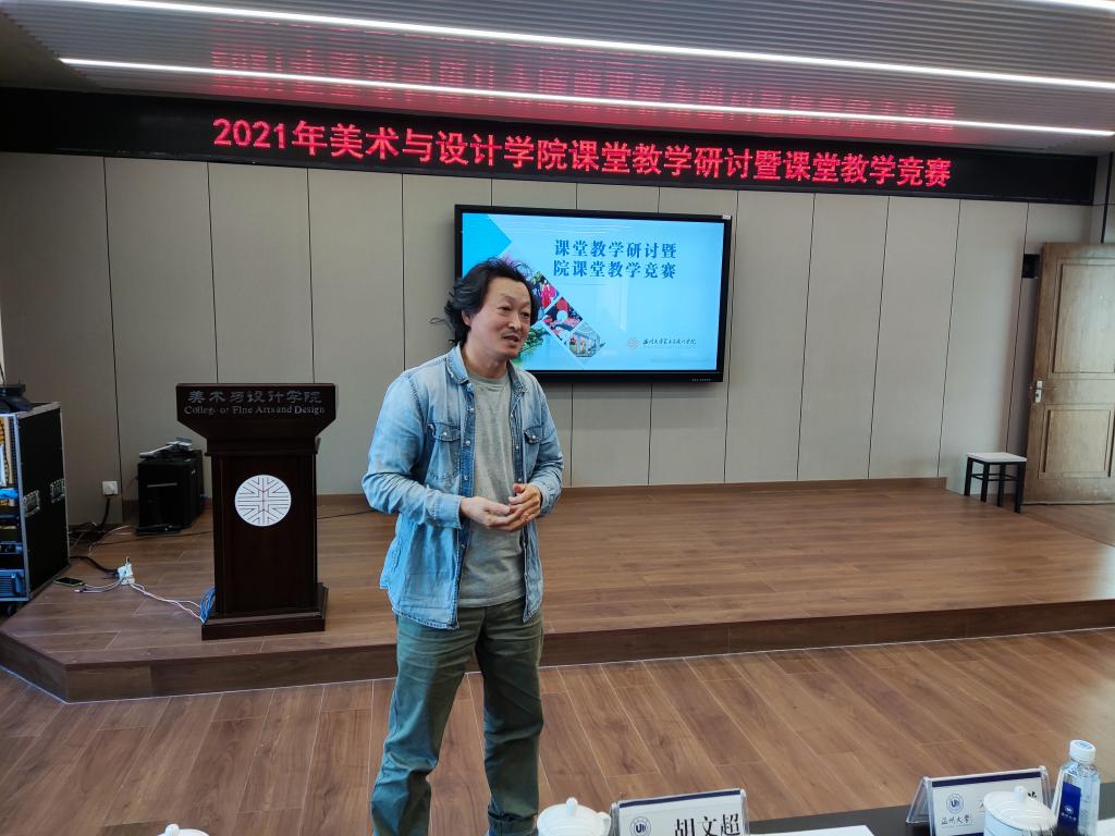 接着,来自美术系、环设系、服设系、服工系的参赛教师郑敬玉、尹乃军、王薇、潘赛瑶、赵丽艳、刘骎、黄高路、徐亮、程巍、胡毓娥分别以说课展示了各自课程的教学设计和思路。