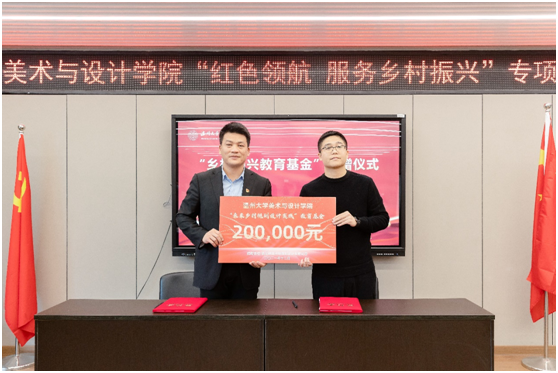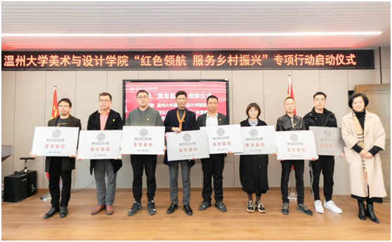 12月24日下午,KY开元集团官网入口举行“红色领航 服务乡村振兴”专项行动启动仪式,宣布与文成周山、瓯海丽岙、洞头霓屿、苍南马站、永嘉鹤盛、泰顺雅阳、平阳湖屿、苍南赤溪8个乡镇街道共建“美育基地”并揭牌,正式吹响“红色领航 服务乡村振兴”的号角。据了解,近年来KY开元集团官网入口师生积极探索助力地方乡村振兴工作。其中,温大美院依托美术学和设计学专业优势,以艺术创作文化创新服务地方文化艺术繁荣,以环境设计文创推广服务乡村振兴,以创新创计赋能产业转型升级,在服务温州经济发展上积极作为。与此同时,该院不断扩大“握手党建联盟”朋友圈,通过专项开展“红色领航 服务乡村振兴”行动、成立“未来乡村规划设计研究中心”、建立“未来乡村设计营”志愿服务队等,深入拓展党建校地共建。“以此次‘红色领航 服务乡村振兴’专项行动契机,我们将努力引导广大师生增强服务乡村振兴的责任感使命感,努力在服务乡村振兴中实现人才培养、学院发展的共赢。”温大美院党委书记叶正飞表示,希望广大青年学生努力在服务乡村振兴中锻炼专业、淬炼品质,让青春之花在祖国最需要的地方绽放。值得一提的是,此次行动还得到社会各界的支持。温大美院校友、浙江映筑环境规划设计有限公司总经理颜士洲无偿捐赠20万元,成立“KY开元集团官网入口乡村振兴教育基金”,用于专项资助和奖励该学院在乡村振兴实践项目及服务乡村振兴领域做作出贡献的优秀教师与学生。