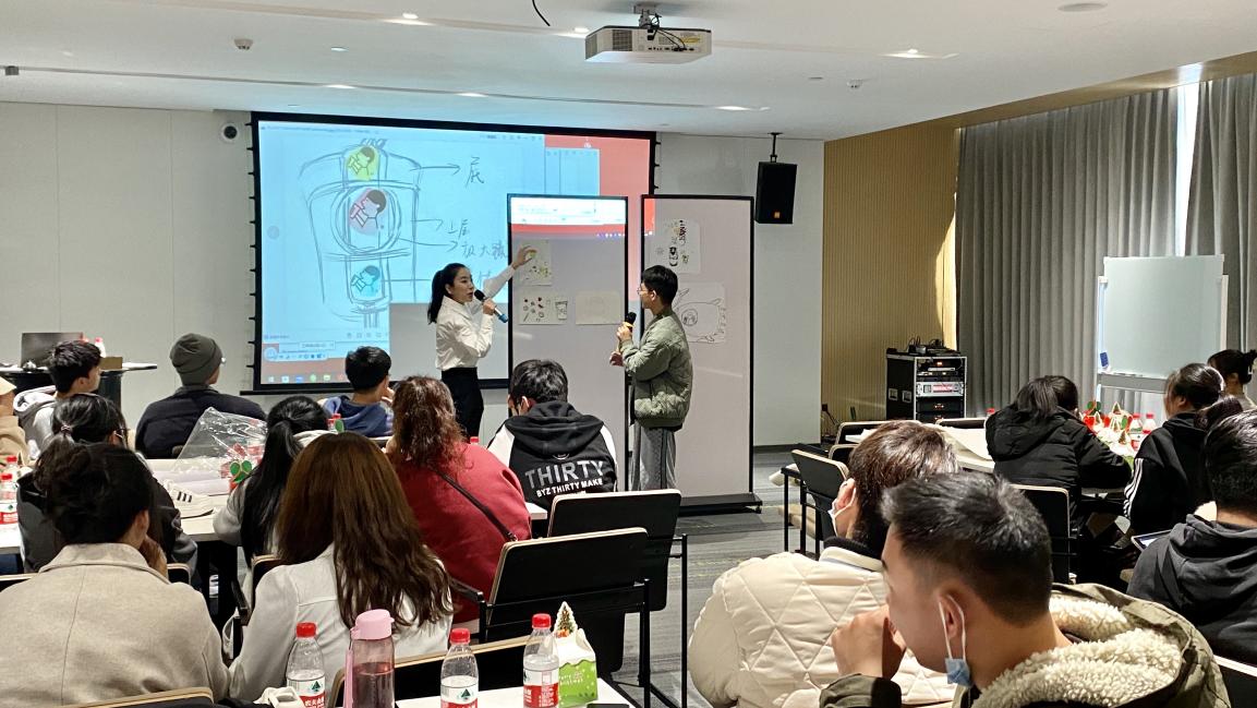 随后,卓诗尼创意企划负责人石竹琳为同学们精心准备的设计创意训练营启动,在一个多小时的时间里,同学们围绕石总监的任务布置,展开头脑风暴,积极探讨并展示成果,开启了一段美妙的设计之旅,同学们的创意想法得到了公司设计师的高度赞赏,最后,石总监对大家的成果进行了点评并颁奖。