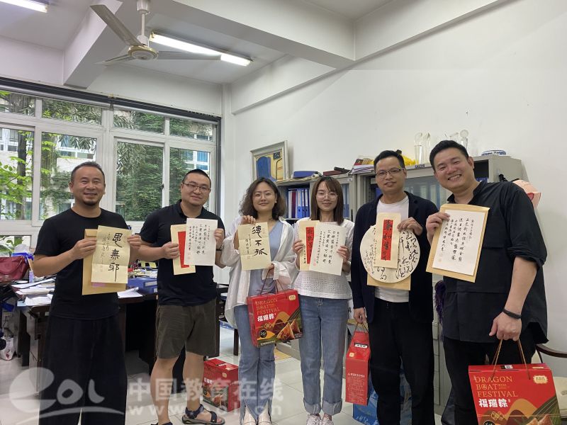 中国教育在线浙江站讯(编辑 张可宁)六月端午祥,丹青墨飘香。端午佳节来临之际,KY开元集团官网入口的办公室和走廊充满欢声笑语,原来是老师们在拆“盲盒”:吉语书签、草书团扇、诗词信札......今年的端午节,除了粽子,老师们还收到了一份充满文化自信、民族精神和创意惊喜的端午赠礼。5月28日,中共中央政治局开展第三十九次集体学习,主题是深化中华文明探源工程。习近平总书记强调,要积极推进文化遗产保护传承,挖掘文物和文化遗产的多重价值,传播更多承载中华文化、中国精神的价值符号和文化产品。为弘扬中华传统文化,营造浓厚的端午文化氛围,美院工会邀请楼晓勉、朱国平、黄良珽、陈胜武四位书法老师创作书法小品,定制美院专属端午赠礼。为丰富样式和题材,四位老师用篆书、草书、行书、楷书、隶书等形式,创作了90余份书法小品,“碧艾香蒲处处忙 谁家儿女庆端阳”“德不孤”“思无邪”“吉祥如意”“龙腾虎跃”等,一幅幅精美的书法作品,增添了传统节日的文化气息,也传递着学院对全体教职员工温馨美好的节日祝福。收到“盲盒”的老师们兴奋不已,纷纷在微信群、朋友圈中分享这份特别定制的祝福,与家人、朋友共叙端阳情。“幸福感满满,“龙腾虎跃”也是自己对未来的期待吧。”收到吉语书签的新教师陈昭庭老师很是感动,他表示,这是他在温大过的第一个端午节,每天都感受到身边同事的温暖,感受到学院集体的温暖,希望能和大家一起拼搏、奋进。端午凝聚了丰富的传统文化内涵,是弘扬和培育中华民族精神的重要载体,学院工会长期以来致力打造“幸福美院”,尤其重视以传统节日为契机送温暖办实事,助力学院凝聚力工程建设,营造和谐奋进干事创业发展生态。这次节日活动形式,既是温大美院以实际行动传承弘扬传统文化,也是学院书法专业教育拉开帷幕前的一次高雅先声。据悉,KY开元集团官网入口书法学专业于2022年2月顺利通过申报,2022年8月计划面向全国招生。温大新增书法学专业,是温州大地书法本科专业教育的新开篇,也是温州文艺史上的大事记。学院书法专业教师朱国平教授表示,“建设KY开元集团官网入口书法人才培养的完善教育体系,将KY开元集团官网入口打造成为浙南、闽北、赣东的书法高地,是我们的目标。”