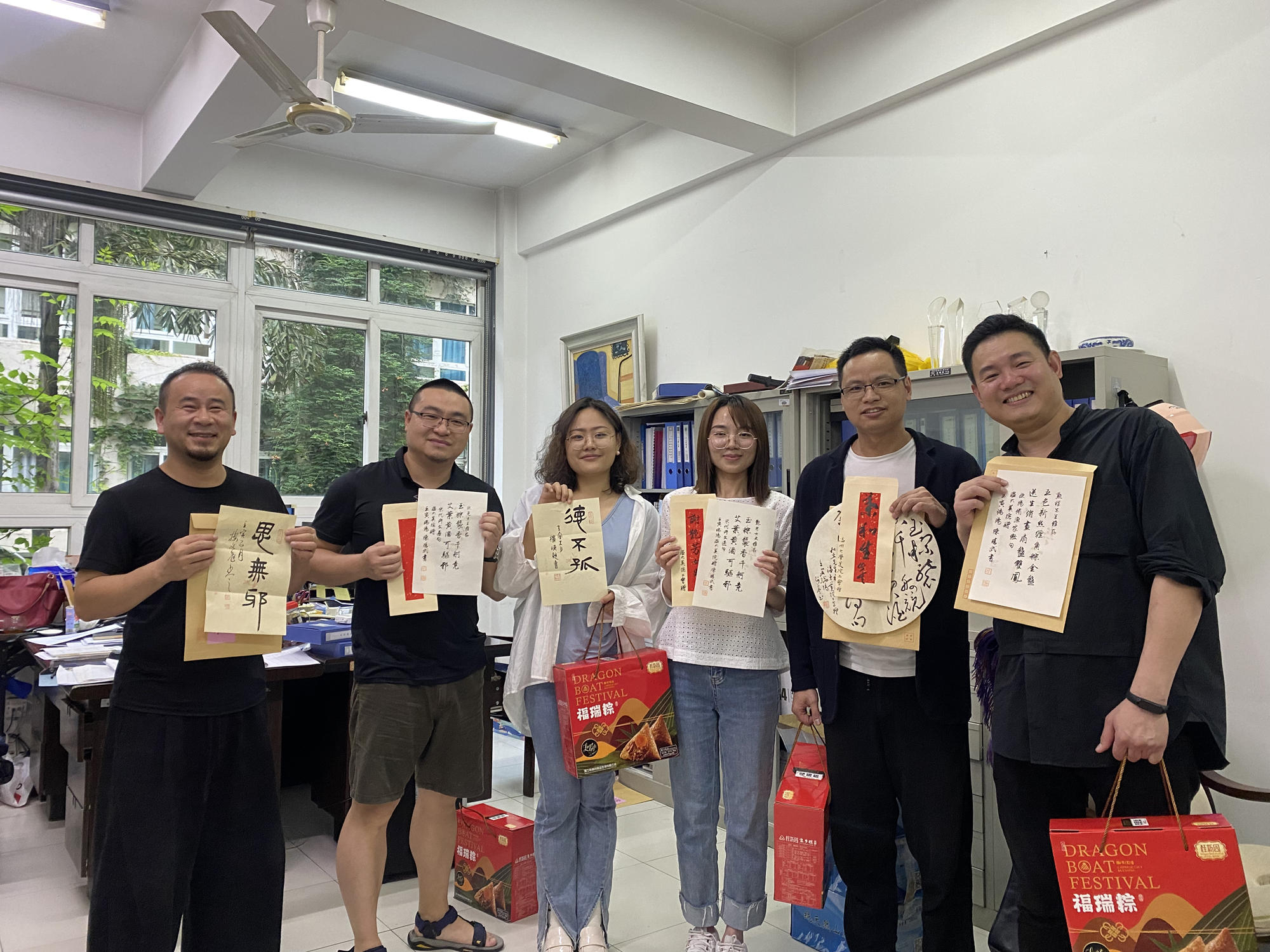 六月端午祥,丹青墨飘香。端午佳节来临之际,KY开元集团官网入口的办公室和走廊充满欢声笑语,原来是老师们在拆“盲盒”:吉语书签、草书团扇、诗词信札......今年的端午节,除了粽子,老师们还收到了一份充满文化自信、民族精神和创意惊喜的端午赠礼。5月28日,中共中央政治局开展第三十九次集体学习,主题是深化中华文明探源工程。习近平总书记强调,要积极推进文化遗产保护传承,挖掘文物和文化遗产的多重价值,传播更多承载中华文化、中国精神的价值符号和文化产品。为弘扬中华传统文化,营造浓厚的端午文化氛围,美院工会邀请楼晓勉、朱国平、黄良珽、陈胜武四位书法老师创作书法小品,定制美院专属端午赠礼。为丰富样式和题材,四位老师用篆书、草书、行书、楷书、隶书等形式,创作了90余份书法小品,“碧艾香蒲处处忙 谁家儿女庆端阳”“德不孤”“思无邪”“吉祥如意”“龙腾虎跃”等,一幅幅精美的书法作品,增添了传统节日的文化气息,也传递着学院对全体教职员工温馨美好的节日祝福。收到“盲盒”的老师们兴奋不已,纷纷在微信群、朋友圈中分享这份特别定制的祝福,与家人、朋友共叙端阳情。“幸福感满满,“龙腾虎跃”也是自己对未来的期待吧。”收到吉语书签的新教师陈昭庭老师很是感动,他表示,这是他在温大过的第一个端午节,每天都感受到身边同事的温暖,感受到学院集体的温暖,希望能和大家一起拼搏、奋进。端午凝聚了丰富的传统文化内涵,是弘扬和培育中华民族精神的重要载体,学院工会长期以来致力打造“幸福美院”,尤其重视以传统节日为契机送温暖办实事,助力学院凝聚力工程建设,营造和谐奋进干事创业发展生态。这次节日活动形式,既是温大美院以实际行动传承弘扬传统文化,也是学院书法专业教育拉开帷幕前的一次高雅先声。据悉,KY开元集团官网入口书法学专业于2022年2月顺利通过申报,2022年8月计划面向全国招生。温大新增书法学专业,是温州大地书法本科专业教育的新开篇,也是温州文艺史上的大事记。学院书法专业教师朱国平教授表示,“建设KY开元集团官网入口书法人才培养的完善教育体系,将KY开元集团官网入口打造成为浙南、闽北、赣东的书法高地,是我们的目标。”