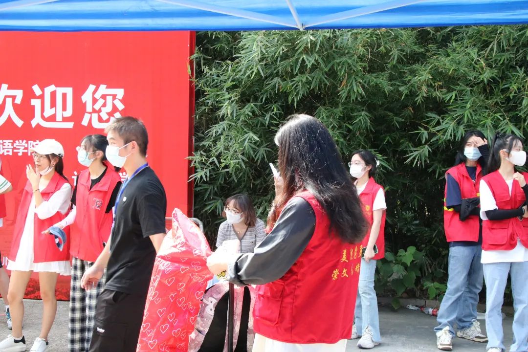 红马甲的身影在人群中穿梭,时刻准备着伸出援手,志愿者为新生们提行李、带路,帮助他们解答疑问。由于疫情的原因,家长无法入校,但是志愿者们辛勤的身影,想必也会给新生们带来一丝温暖,也在踏入大学的新生活中留下浓墨重彩的一笔。