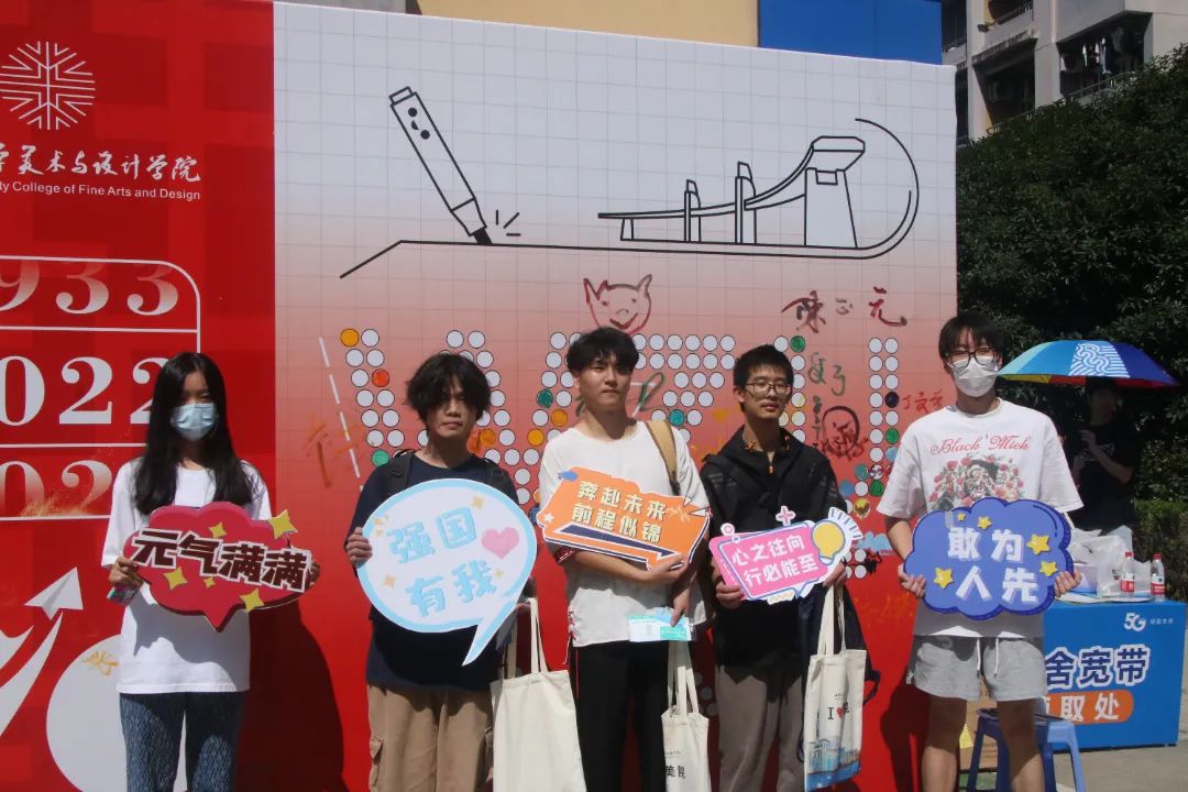 学院还开展了新生迎新现场“手绘祝福”的活动。恰逢2023年是温大校庆90周年,版面中的“wzu art”由圆圈构成,新生们在办理报道后,会在圈内进行绘画,代表着我们温大美院新生报到的活力入驻!90数字结合了飞机的造型,祝福着我们温大可以高飞致远,也祝福着我们温大的莘莘学子能够前程似锦、勇往直前 !