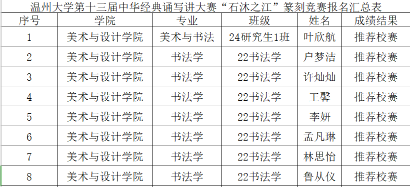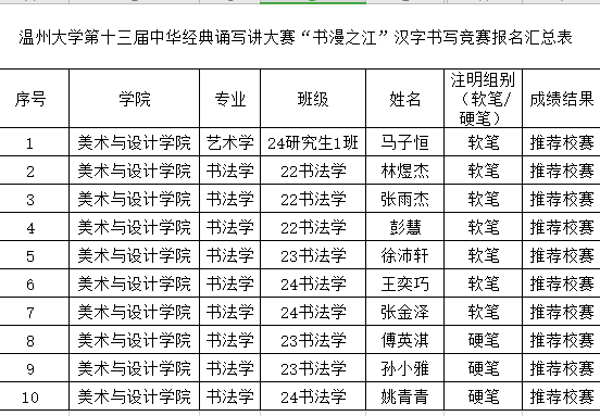 现将开元官网在此次大赛中,包括汉字书写竞赛、诵读竞赛、篆刻竞赛项目入选校赛的名单予以公布。