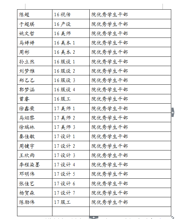 现将2017-2018学年第一学期KY开元集团官网入口“优秀学生干部”“工作积极分子”名单公示如下,如对评选结果有异议,请于3月7日17:00前及时联系美术学院学生科。