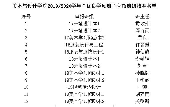 根据KY开元集团官网入口2019/2020学年“优良学风班”立项申报工作的通知要求,经班级申报、学院初步审核,现决定对17环境设计本1等12个班级进行立项推荐,现将结果予以公布。