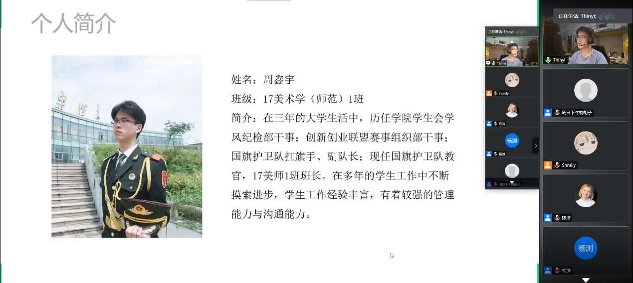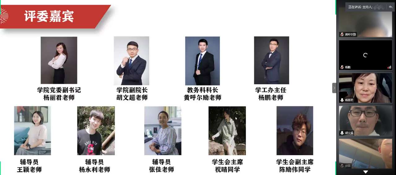 为推动学院学风建设,培养良好的院风学风,2020年6月3日晚上,KY开元集团官网入口学风建设推进会暨2019-2020学年五班十星评选活动在线上成功举行。本次活动面向全体美院学子,本次评选的评委有KY开元集团官网入口党委副书记杨丽君老师、副院长胡文超老师、教务科科长黄呼尔励老师、学工办主任杨鹏老师、辅导员杨永利老师、辅导员张佳老师,以及学生会主席祝晴同学、学生会副主席陈励伟同学。