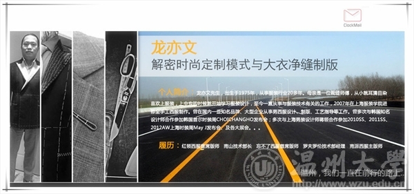 时间:2015年11月1日早上9:00-11:30 下午14:00-17:00 地点:KY开元集团官网入口南校区会展中心雁山厅 主题:解密时尚定制模式与大衣净缝制版 主讲人:龙亦文 温馨提醒:本讲座可盖讲座章,请同学提前20分钟到场盖章签到,讲座结束时注意盖签退章。
