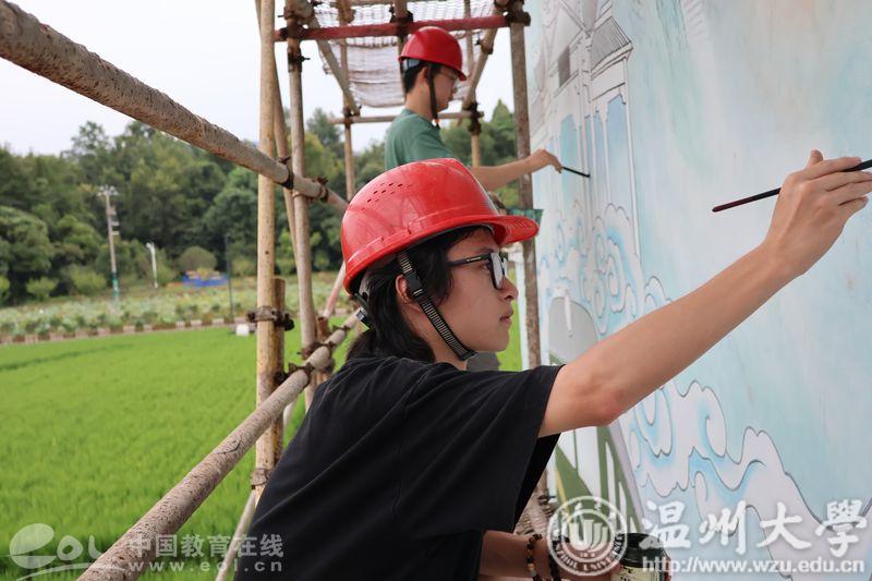 中国教育在线浙江站讯(编辑 白菁洁)“这次回家探亲,发现我们村里环境又有了新提升,变得更干净整洁了,老百姓家中的好几面墙还多了巨幅壁画作品,变得更有韵味了。”近日,浙江省温州市鹿城区山福镇驿头驿阳村在外上班的程志勇周末回家,欣喜地和亲友们分享。他指着家门口干净清爽的村道、依次排列的垃圾桶和墙上画的系列瓯江山水主题壁画,兴奋地说:“这才是我心目中美丽乡村该有的样子!”