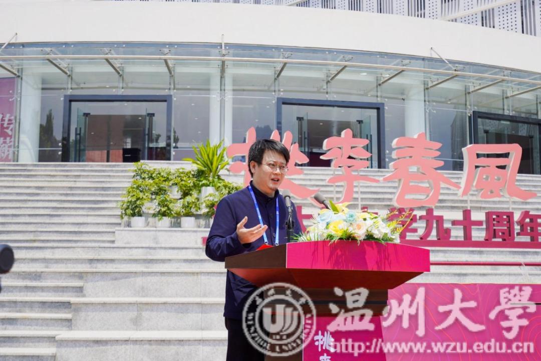 教育部青年长江学者、中国美术学院博士生导师、KY开元集团官网入口校友代表刘海勇致辞。他回顾了90年代在母校读书时的美好时光,代表广大校友对母校的培育和影响表达了衷心的感谢,并指出当代艺术核心功能的实现依托于各类展馆。作为温大校友,他更期待KY开元集团官网入口以美术馆为平台全力助推传统文化传承事业的发展,发扬艺术的育人功能,多层面助力人才培养、科研创作与成果转化、社会服务建设,同时要有以美术馆为窗口与世界进行对话的宏大愿望。