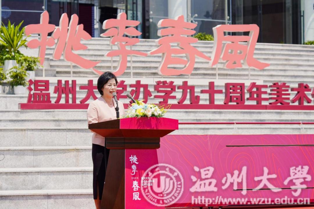 桃李不言,满园芳菲。5月13日,KY开元集团官网入口隆重举行“桃李春风——KY开元集团官网入口办学九十周年美术作品展”开幕式暨KY开元集团官网入口美术馆开馆仪式。浙江省教育厅党组成员、副厅长陈峰,中国美术学院党委书记金一斌,吉林艺术学院党委书记张东航,温州市委常委、宣传部部长施艾珠,KY开元集团官网入口党委书记、温州市委组织部部长张健,KY开元集团官网入口原党委书记谢树华,浙江展览馆馆长汪健,原温州师范学院美术系首任系主任、教授叶玉昶等众多领导嘉宾出席,温州市相关部门负责人、艺术名家、温大校友、师生代表等近300人参加。KY开元集团官网入口校长赵敏主持活动。