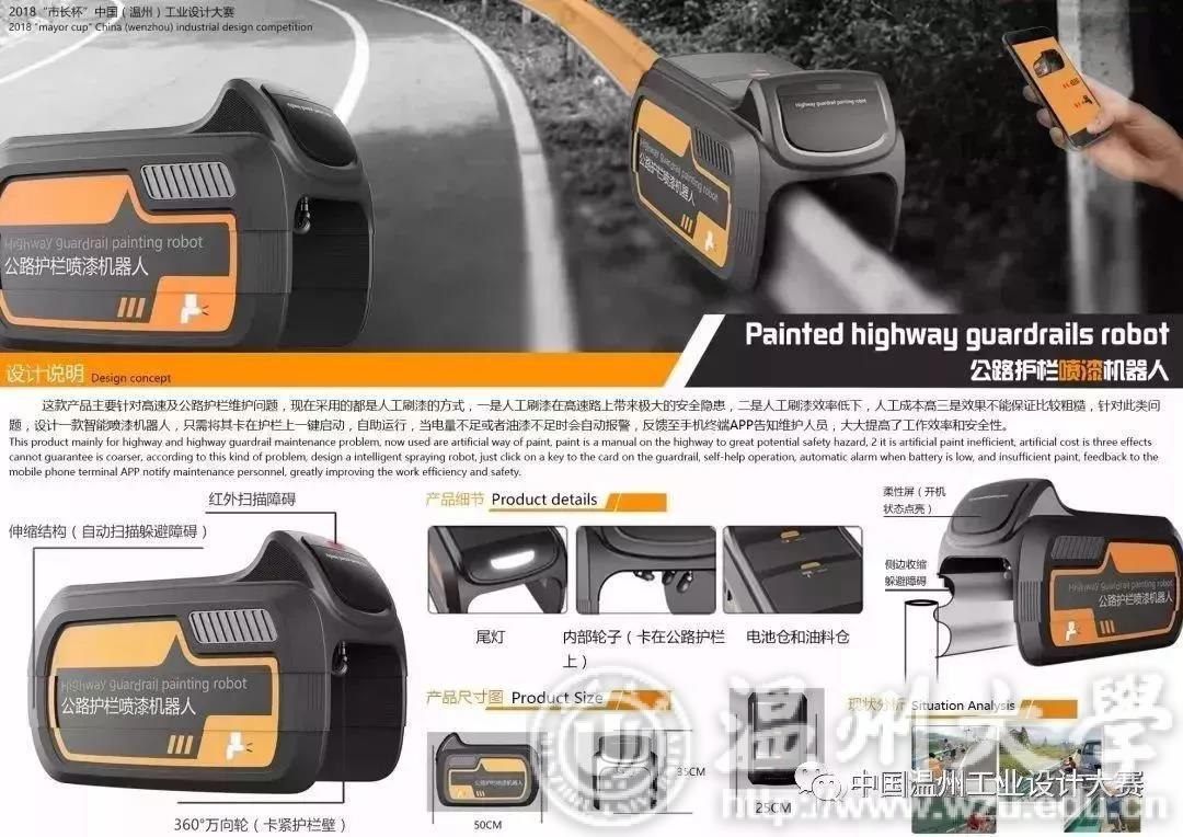 据大赛主办方介绍,今年大赛是第二届“市长杯”工业设计大赛,相比去年,有了更大的提升:一是紧扣温州产业特色。作品的征集分高端装备、电子信息、居家用品、服装服饰等四大类,紧密贴合温州产业。二是广泛吸引海内外设计人才。参赛选手既有来自温州本地,更有来自北京、上海、广州、深圳、台湾等地的参赛选手。三是参赛作品质量高。作品不仅外观设计赏心悦目,在功能上也是构思巧妙,贴近需求,很好地兼顾了创意性、美观性和实用性。