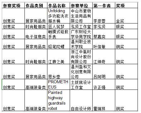 大赛主办方邀请工业设计高端专家,对所有作品进行网络评审和现场会审,最终确定28件产品类作品和38件创意类作品进入复赛,并评选出红蜻蜓鞋业、飘蕾服装等专项奖获奖作品20件。随后,再从复赛入围名单中评选出产品奖、创意奖作品各8件,这16件作品参加最终的“市长杯”决赛路演,角逐出金、银、铜奖。