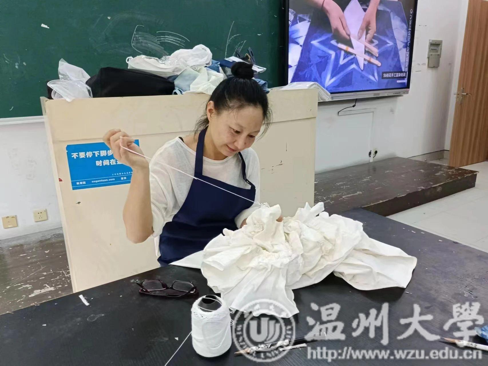 瓯绣是国家级非遗技艺,图案秀丽、色彩丰富、绣功精细、针法多变。温州市瓯绣非遗传承人余琼老师进阶性从起针,分线,绷布,描画,多种针法步骤进行讲授,并带领学员进行瓯绣小品创作。金晨怡教授在刺绣造物课程中传授刺绣技法、饰品与文创设计、非遗微课开发等内容。“通过这次学习借着刺绣,来一场与传承手艺的对话。我更熟练地掌握了瓯绣绣法。相信今后,一定能够绣出更好的作品。”有学员曾说过。